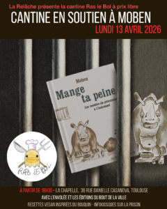 »Ras le Bol » organise une cantine en soutien à Moben et contre l’isolement carcéral, à la Relâche de la Chapelle le lundi 13 avril 2026, avec les Éditions du bout de la ville et L’Envolée. - « L’AP se croit au-dessus des lois » – ELSP et chiens aux parloirs aux Baumettes – Mobilisations pour El Hacen Diarra, tué par des policiers
